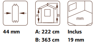 Abri de jardin deux pentes asymétrique Claudia 19.4 m2 en bois 44 mm - Une Oasis de Lumière et de Confort au Cœur de Votre Jardin.