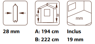 Les dimensions utiles de la fenêtre (66x89 cm) et de la porte (73x175 cm) ont été pensées pour une utilisation pratique et confortable.