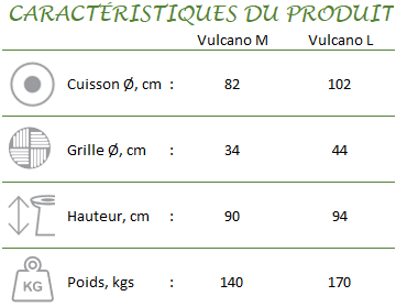 Afin de s'adapter à vos besoins de réception et à l'espace disponible dans votre demeure, nous proposons le Braséro-Barbecue VULCANO en deux formats distincts de surface de cuisson. Le premier modèle, doté d'un diamètre de 82 cm, est idéal pour des réunions intimistes tout en offrant une capacité surprenante. Pour les amoureux des grandes tablées et les passionnés de gastronomie souhaitant explorer plusieurs modes de cuisson simultanés, la version en 102 cm de diamètre impose sa superbe et sa polyvalence.