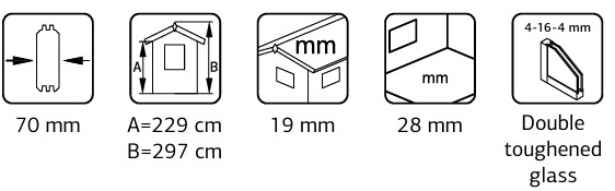 Kromadif vous présente le superbe chalet de jardin Anna, une structure en bois naturel de 70 mm d'épaisseur offrant une surface totale généreuse de 26,8+1,9 m2 sous un toit à double pente de 17,5˚. Ce modèle multifonctionnel est ingénieusement divisé en trois espaces distincts de 10,7 m2, 16,1 m2 et 1,9 m2 pour garantir une praticité absolue au quotidien. La première pièce de 10,7 m2 est baignée de lumière grâce à ses deux fenêtres à double battant et dispose d'une porte intérieure menant directement au grand séjour. Ce salon central de 16,1 m2, doté d'une large fenêtre en façade, s'ouvre via une double porte sur un espace de 1,9 m2 formant une élégante entrée ouverte. Alliant un design moderne à une ambiance chaleureuse, ce chalet lumineux est l'endroit idéal pour cultiver la bonne humeur et savourer un air de vacances tout au long de l'année.