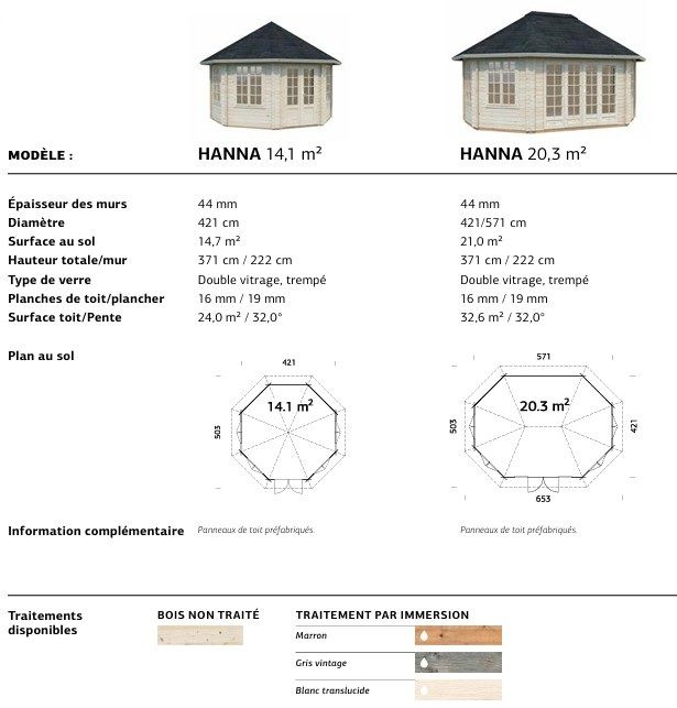 La structure octogonale, coiffée d'un toit à deux pentes, confère au pavillon HANNA un charme intemporel. Ses lignes épurées et sa conception soignée en font un élément architectural remarquable, capable de sublimer n'importe quel espace extérieur. Les larges fenêtres doubles inondent l'intérieur de lumière naturelle, créant une atmosphère chaleureuse et accueillante.