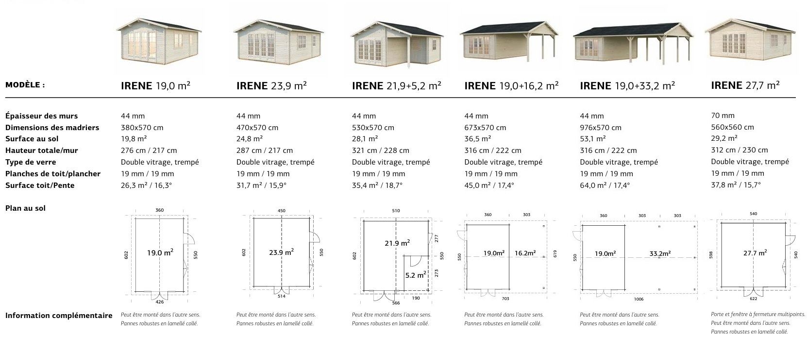La gamme Irène propose une variété de tailles et de configurations pour s'adapter à votre espace disponible et à vos besoins :