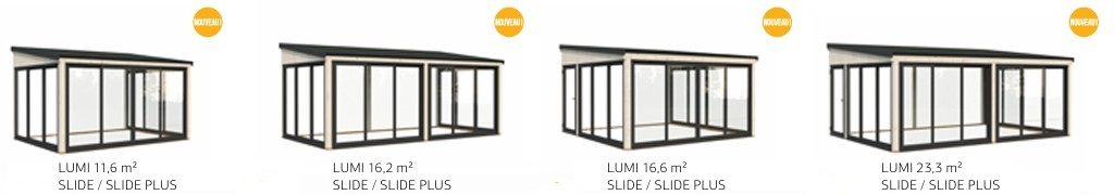 Pour les amateurs de lignes contemporaines, la série LUMI propose un toit plat résolument moderne. Les modèles de 11,6 m² et 16,2 m² offrent une flexibilité totale avec des options de simple ou double vitrage trempé. Les versions plus vastes de 16,6 m² et 23,3 m² intègrent des portes en aluminium haut de gamme et un double vitrage performant, garantissant une isolation optimale et une luminosité éclatante.