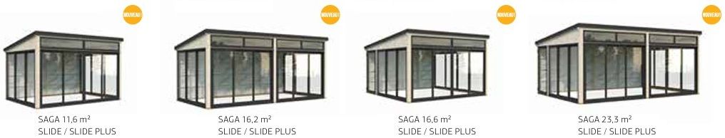 La collection SAGA allie fonctionnalité et esthétisme avec ses configurations à toit plat et ses solutions de passage fluides. Les modèles de 11,6 m² et 16,2 m² sont équipés de portes coulissantes pratiques, tandis que les grandes surfaces de 16,6 m² et 23,3 m² se parent de menuiseries en aluminium et de double vitrage trempé pour une durabilité maximale.