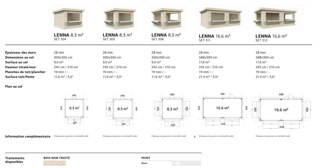 Pour ceux qui privilégient un design sobre et contemporain, notre sélection à toit plat répond aux exigences architecturales les plus modernes. Le modèle Kira, avec sa surface de 7,7 m2, constitue une solution compacte et efficace pour les espaces restreints. Si vous recherchez davantage de volume, la gamme Lenna s'adapte précisément à vos besoins logistiques. Le modèle Lenna 8,3 m2 est disponible en trois configurations distinctes — Set 304, Set 305 et Set 306 — permettant une personnalisation optimale de vos ouvertures et de votre comptoir. Pour les exploitations de grande envergure, le modèle Lenna 16,6 m2 se décline en variantes Set 311 et Set 312, offrant une surface de vente généreuse pour maximiser votre débit lors des fortes affluences.