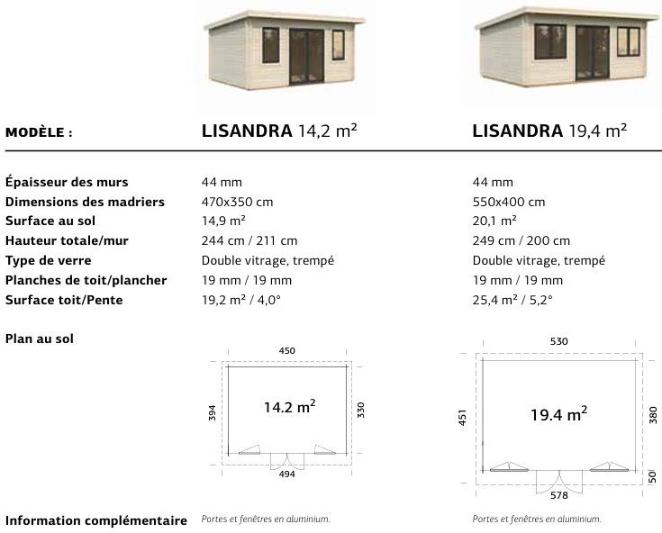 Parmi cette nouvelle gamme, découvrez les modèles LISANDRA, disponibles en deux tailles : 14,2 m² et 19,4 m²
