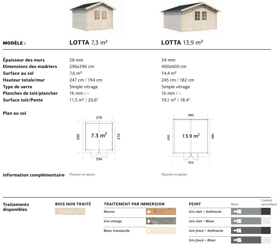 Laissez-vous séduire par la collection Lotta de Kromadif, une symphonie d'abris de rangement d'exception. Alliant un design intemporel à un toit à deux pentes élégamment intégré, chaque pièce est une promesse de raffinement pour votre espace extérieur. Disponible en deux formats généreux de 7,3 m et 13,9 m, leur solidité est assurée par des madriers de 28 mm et 34 mm d'épaisseur, gage d'une durabilité sans faille.
