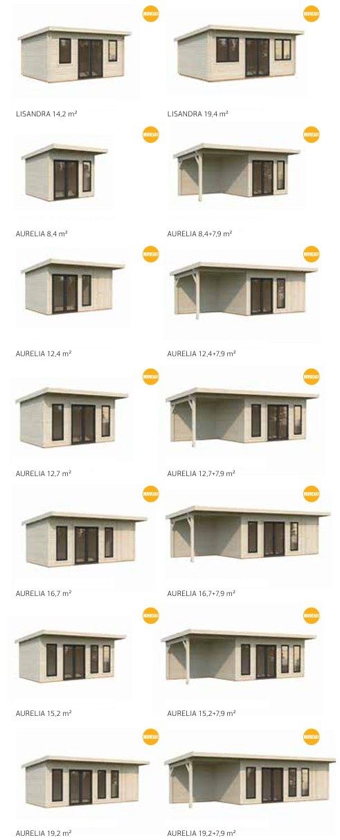 Cette collection innovante inclut les modèles LISANDRA, disponibles en deux tailles (14,2m2 et 19,4m2), et AURELIA, offrant une variété impressionnante de 12 dimensions différentes allant de 8,4m2 à 19,2m2. Chaque modèle AURELIA peut être agrémenté d'un auvent de 7,9m2, clos sur l'arrière pour un espace plus intime.