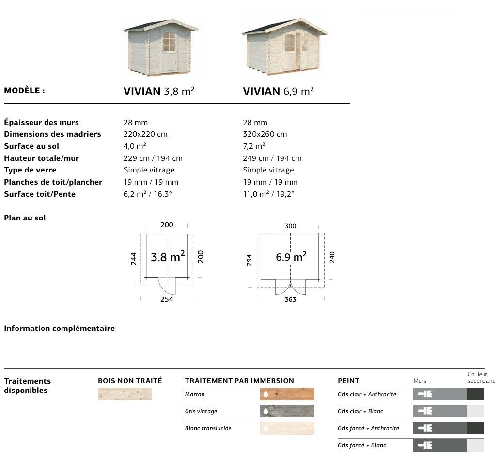 Abri de jardin deux pentes Vivian 6,9 m2 en bois 28mm avec plancher au choix